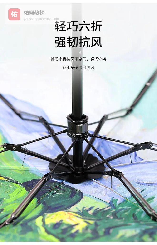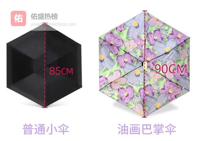 这是因为它采用独特的6折设计加大伞面,比普通小伞宽了足足5cm。