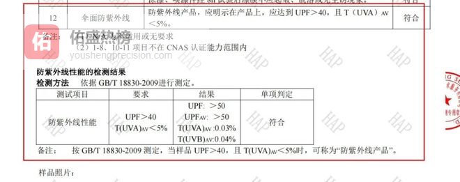 超专业:UPF50 ,能阻挡99%以上紫外线