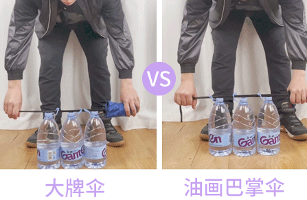 好家伙,在3桶水的摧残下小伞秒弯,骑士伞还笔直笔直的,像兵哥哥一样给力!