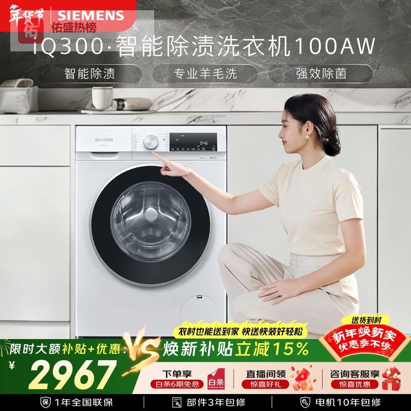 第三款:西门子iQ300 10公斤滚筒洗衣机