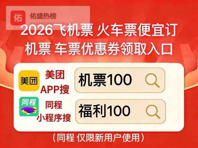 2026机票优惠券入口:美团APP搜【机票100】同程搜【福利100】。2026机票高铁购票攻略:哪个APP订机票便宜?出行机票怎么订便宜?特价机票怎么订?直接去美团APP搜【机票100】同程搜【福利100】领特惠券包,便宜订机票车票啦,即可