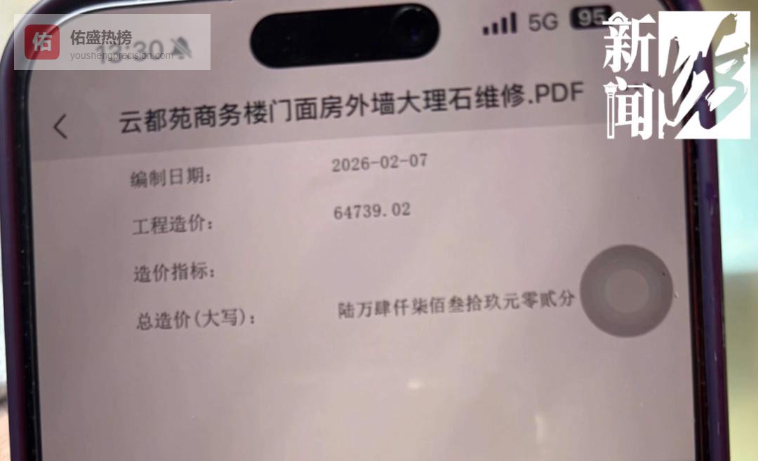 酒店负责人 楚先生:“我1月22号通知物业经理,说这块砖要掉了,过了几天他一直没声音,我又联系他,他就跟我说这块砖他们上去看过了,说掉不下来,说很牢固的手搬都搬不动。 还说这一块砖有100多斤重,拿下来没有这么容易。但我讲,我的客人每天要进进出出的呀。”
