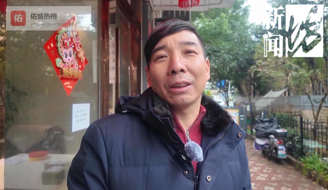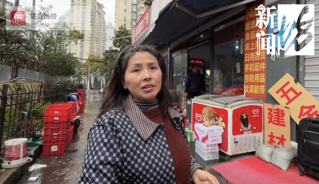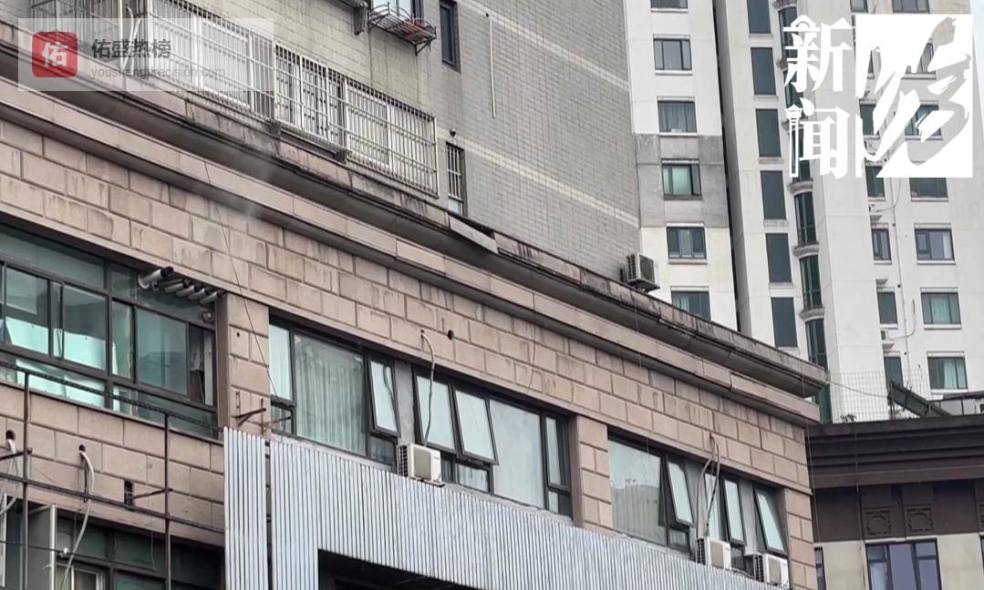 附近商户:“这块就是去年,我们坐在下面,突然掉下来的,声音很大的,像地震一样掉在我们广告牌上面敲了个洞。”