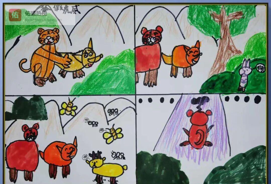 ❒ 《狐假虎威》小小小小让百兽排成整齐方阵,狐狸骑在老虎背上挥手致意。她故意把老虎画成“眯眯眼”,狐狸画成“指挥家”。老师引导:“老虎威风去哪了?”孩子齐答:“被狐狸借走了!”画面里老虎的怯场与狐狸的张扬形成反差,孩子笑完就记住:权力可以被利用,但威信不能外借。
