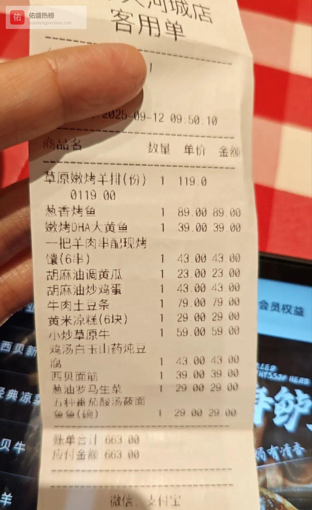 它跟店里那道烤鱼情况差不多,都是西贝“明厨亮灶”模式下,靠中央厨房提前加工好,来确保出餐效率和口味一致的成果。就算店员跟你讲“我们这是现场加热的”,可实际上,它还是属于提前加工好的食物。