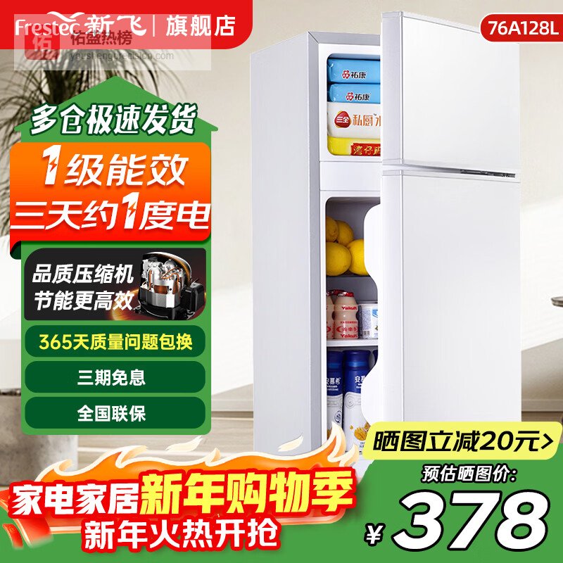 新飞冰箱小型租房用 一级能效冷 藏冷冻两用1-2人家用小冰箱 出租房双门电冰箱办公室两门 26年升级 76A128L一级能效【保温升级】白¥
