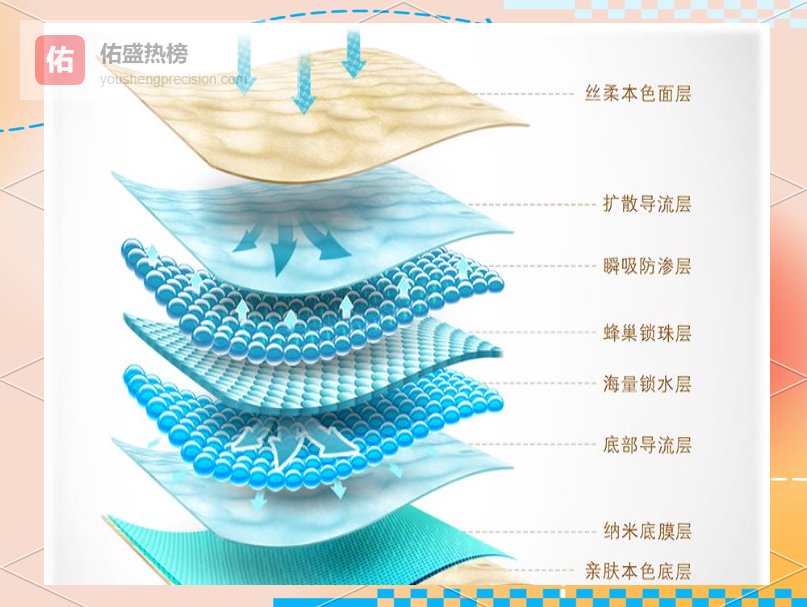 相比尿布的简单结构,纸尿布的结构可就复杂多了,复杂的结构带来的是更强大的功能。