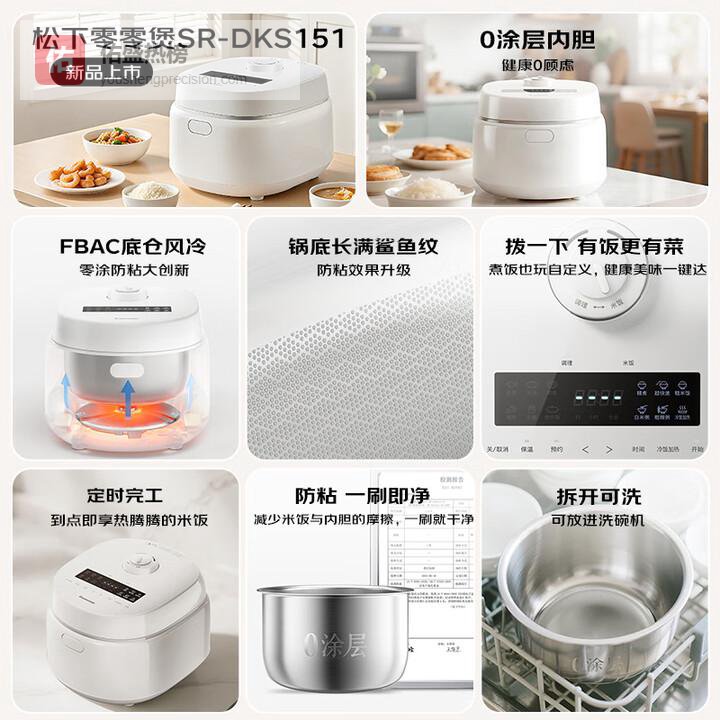 松下(Panasonic)【国家补贴】Xtra零零煲青春版电饭煲0涂层4-5人家用无涂层电饭锅不锈钢内胆煮饭4升容量SR-DKS151¥