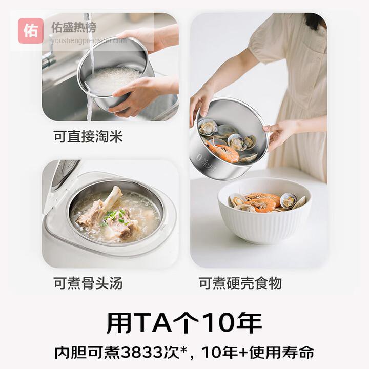 ③ 贴心设计:可拆卸内盖设计,清洗无死角;24小时预约功能,早上出门前设定好时间,晚上回家就能吃到热饭。