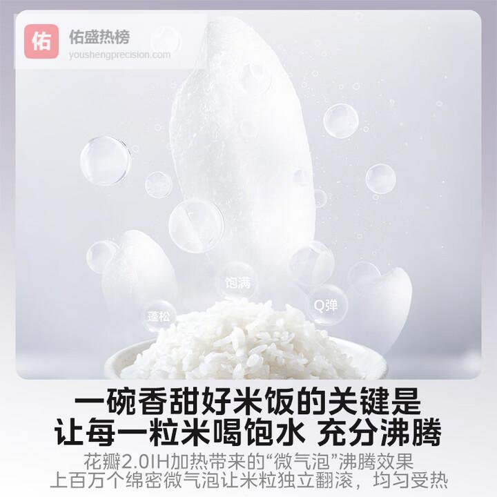 ② 花瓣IH加热:创新的花瓣状IH线圈布局,加热面积提升201%米饭蓬松度提升25%颗粒竖立率达89%