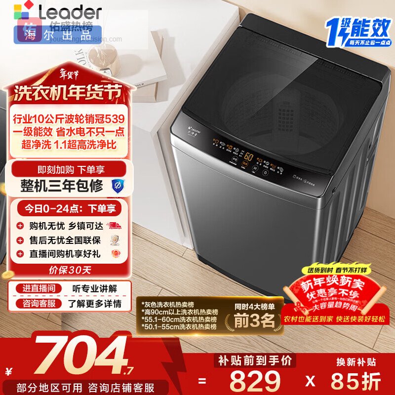 【京东自营】海尔出品统帅波轮洗衣机全自动家用10公斤一级能效京东自营以旧换新家电补贴XQB100-L¥