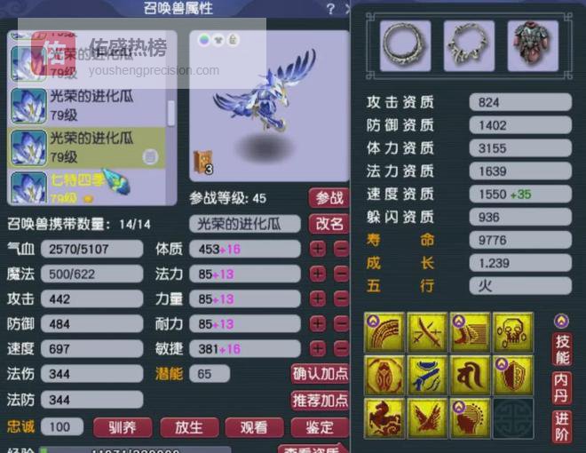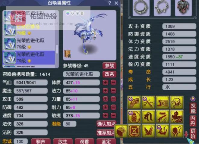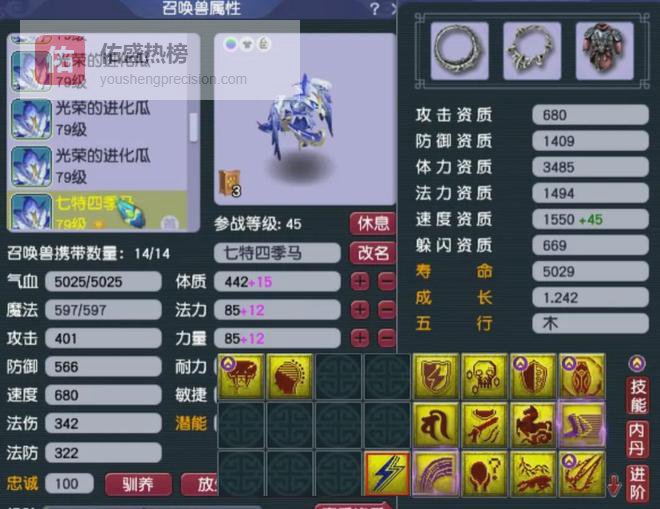 第四、第五只都是翻页四特殊血宠,双超级技能这只属于服战级别配置。