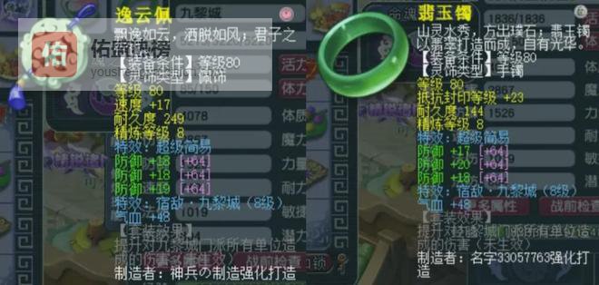 后排灵饰是80级超级简易六防御。佩饰速度17爆3,下排防御共55爆7;手镯抗封23爆7,下排防御共55爆7。