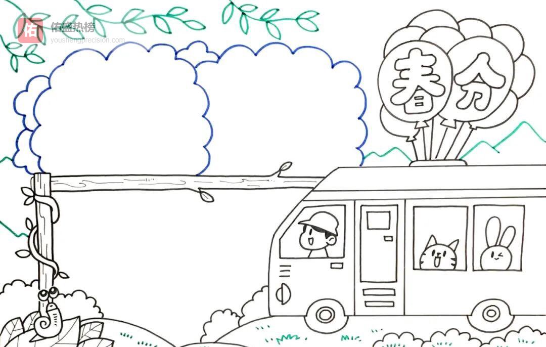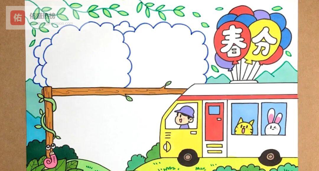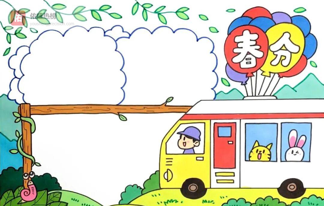 如果想把主题再升华一层,可以在大巴侧面悄悄画一位“雷锋叔叔”——他或许正把最后一本书递给车窗边的小朋友,或扶老奶奶下车。再配一句“学雷锋,迎春分”,整张手抄报立刻拥有“时代温度”。