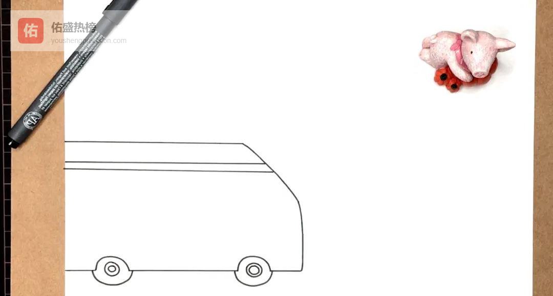 轮廓:用轻柔的铅笔线条勾出车身、车窗、车门,线条不必一次到位,后续可用橡皮修改。