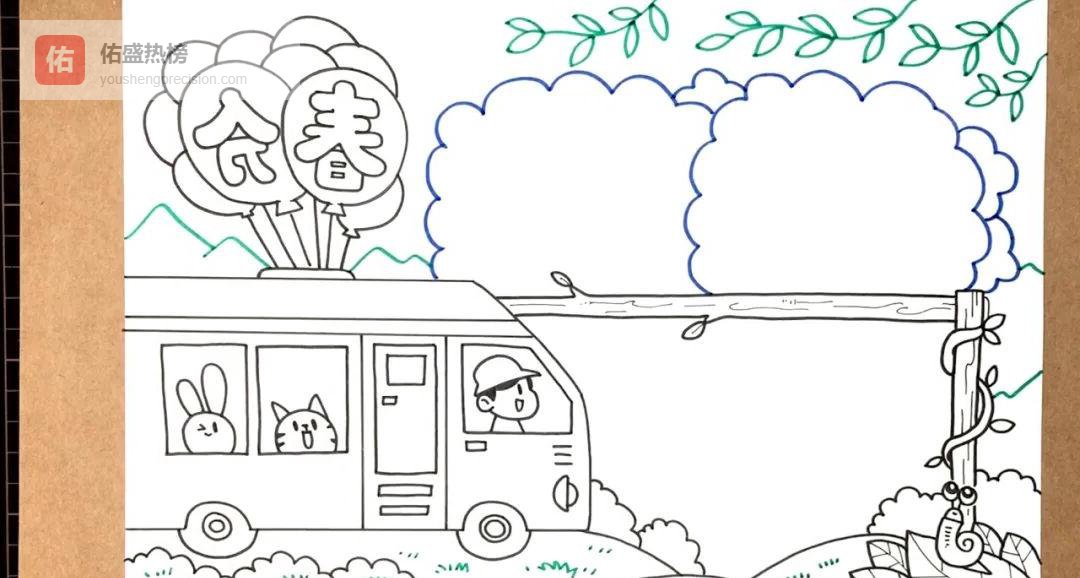 定位:把大巴画在画面正中央,让“旅途”一眼就被看见。