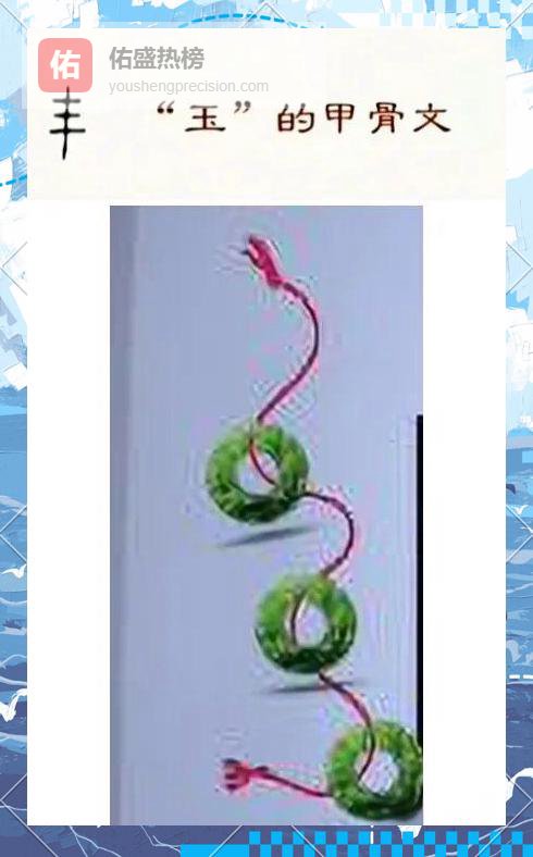 “玉”字早在甲骨文里就出现了,像一根绳子,串着几块玉,可见先人用玉作为配饰已经很普遍了。