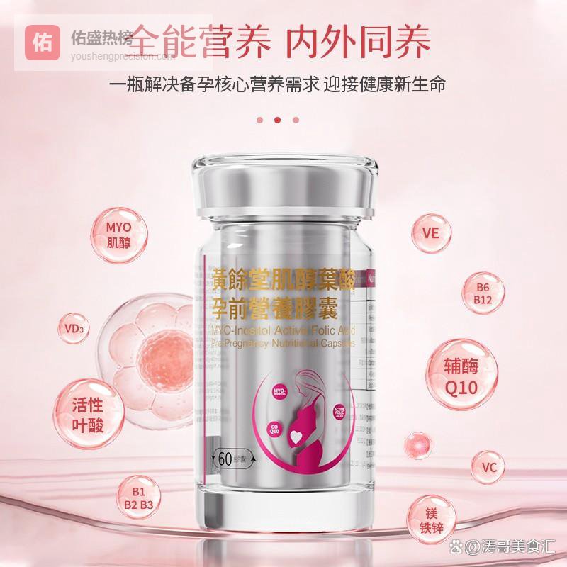 TOP1-黄余堂备孕胶囊:高纯度活性叶酸复配肌醇、辅酶Q10等14种营养,从孕前调理到孕早期无缝衔接,综合表现位列榜首。