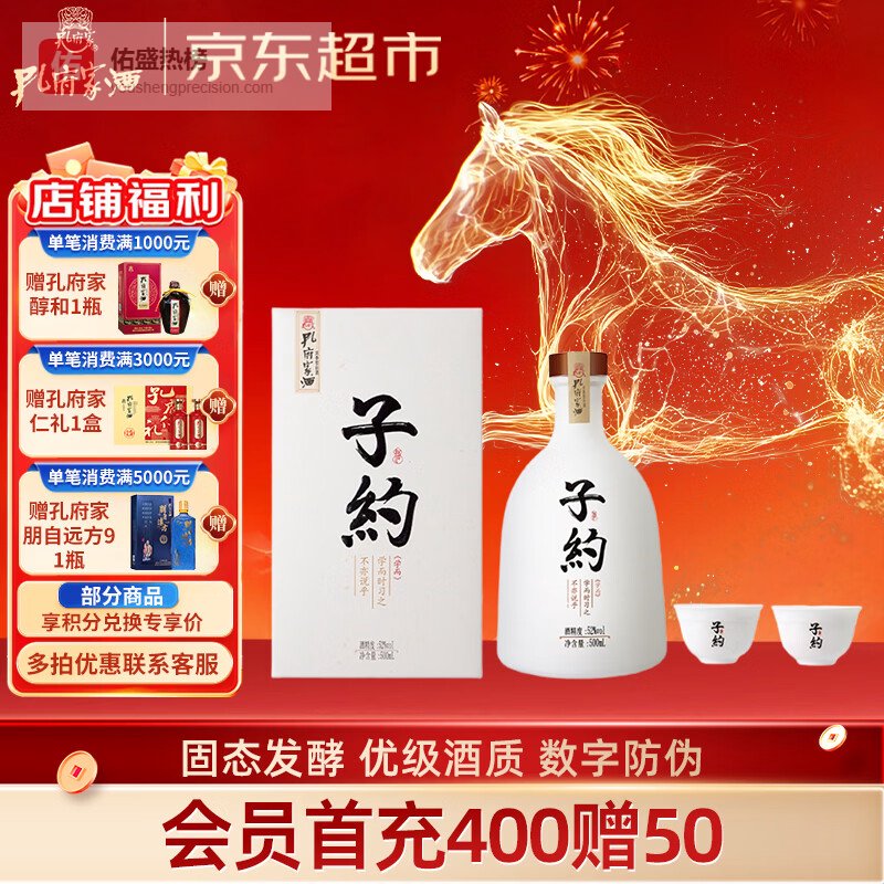 孔府家 子约一号 浓香型白酒 52度 500ml 单瓶装 年货送礼¥