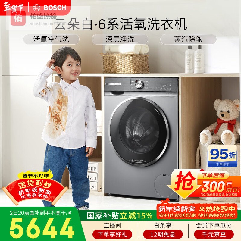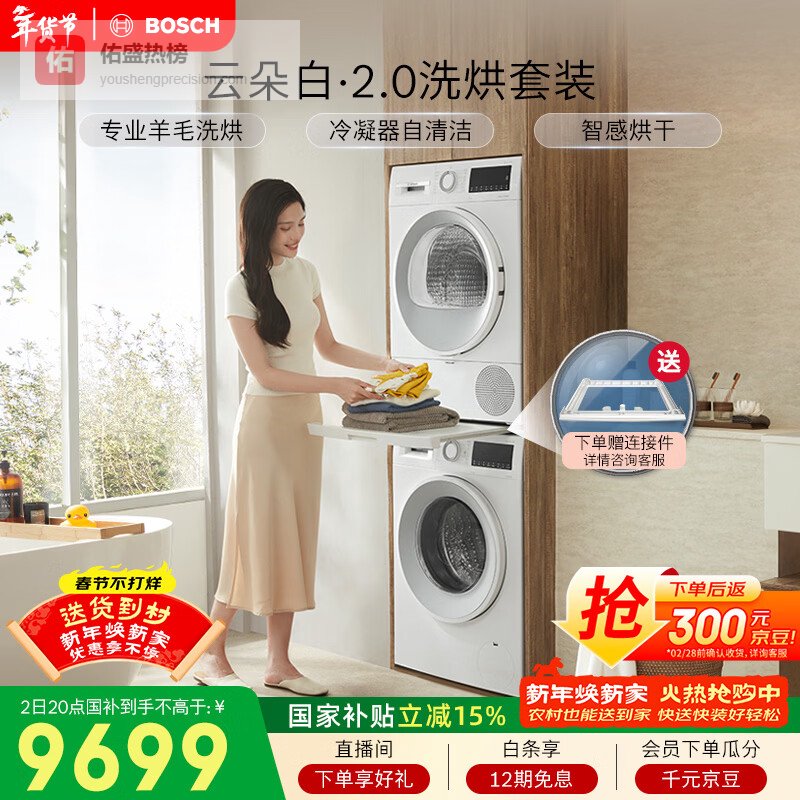 【京东自营】博世云朵白2.0大容量洗衣机羊毛洗烘热泵烘干洗烘套装WGA152000W+WQA254D¥