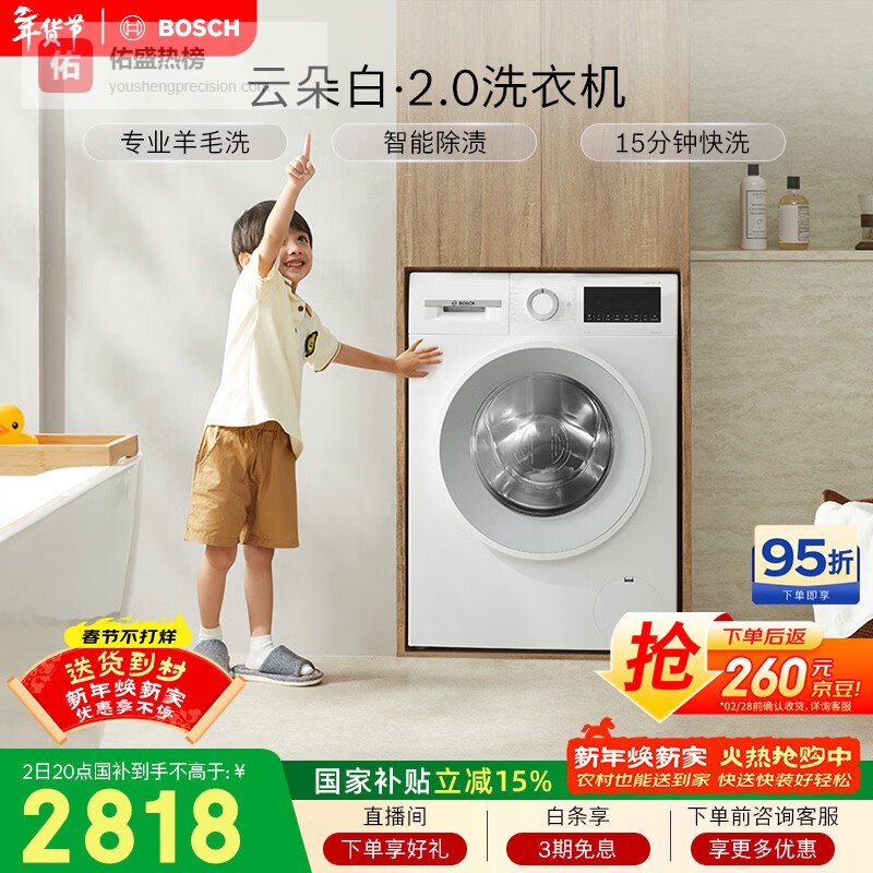 【京东自营】博世云朵白2.0大容量变频强力去渍除菌除螨洗衣机WGA152000W¥