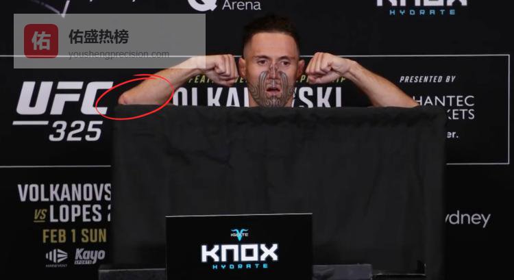 此次UFC325的称重仪式上塔乌最后出场,他在隐私遮挡帘后面称重时,竟然悄悄把胳膊肘放在隐私遮挡帘上支撑身体,企图以此减轻体重作弊蒙混过关。