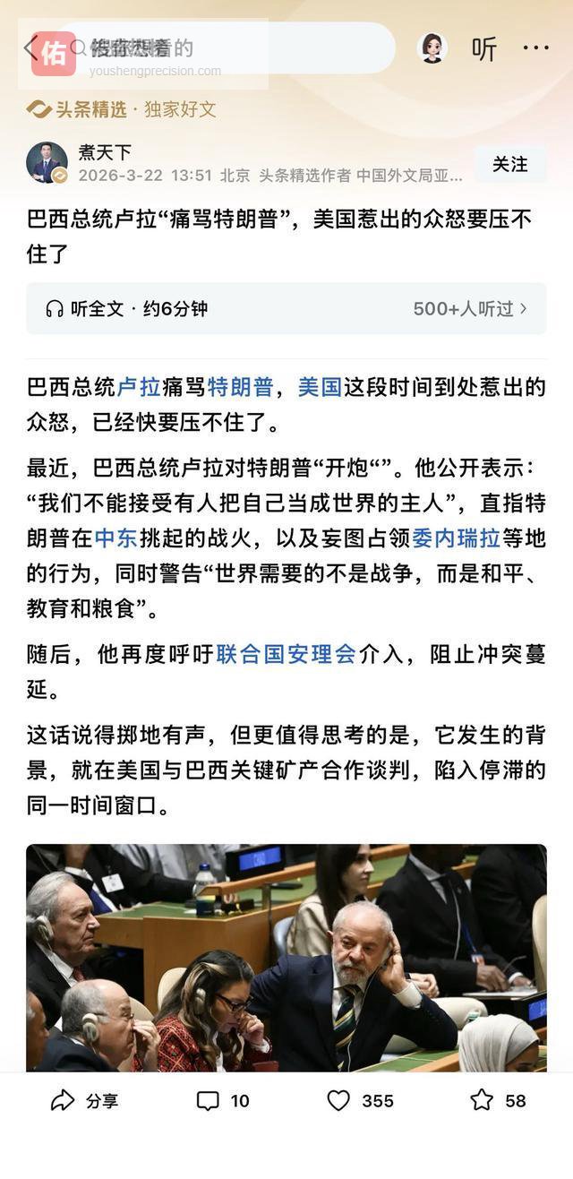 巴西总统卢拉公开痛批特朗普,直言“不能接受有人把自己当成世界主人”。