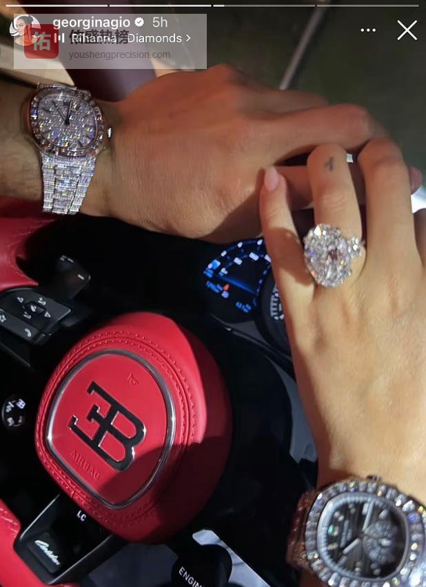 照片中,C罗驾驶着价值约9300万元人民币的布加迪超级跑车,与乔治娜十指紧扣。两人腕上的百达翡丽名表分别价值约483万元和304万元,而乔治娜左手佩戴的订婚钻戒更是高达4145万元。四件物品总价约1.38亿元,被英国《每日邮报》形容为“价值1500万英镑的社交媒体故事”。