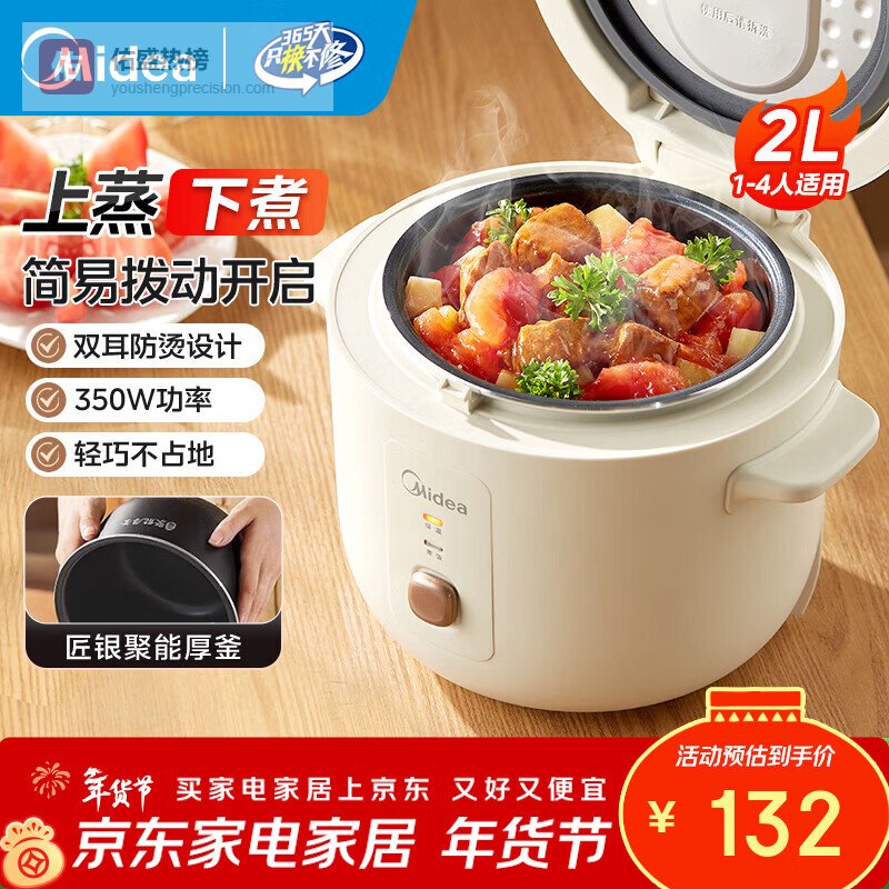 七、美的▶ 2L容量设计:这款电饭煲容量是2升,基本可以满足1到4人的用餐需求,一次就能煮出大概8碗米饭左右,特别适合单身、情侣或小家庭用起来还挺方便。