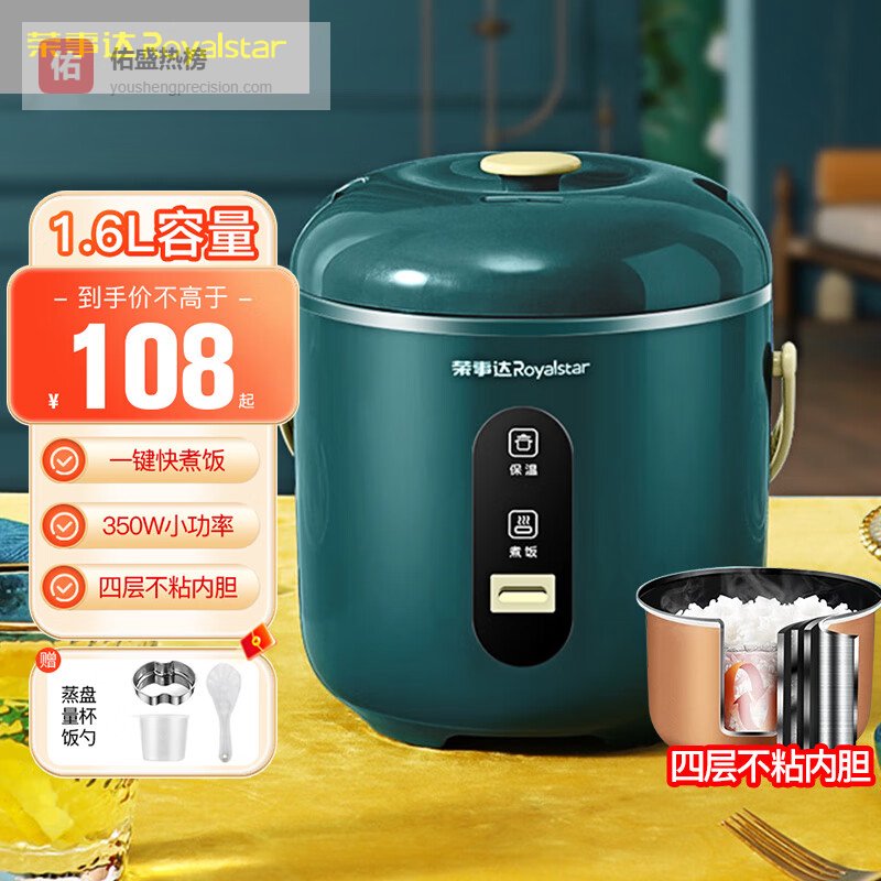 荣事达(Royalstar) 迷你电饭煲小型单身情侣1-2-3人家用宿舍小功率蒸煮两用便携学生电饭锅快速煮饭锅煲粥煮粥锅 绿色/350W【1-3人用】带蒸盘 1.6L¥