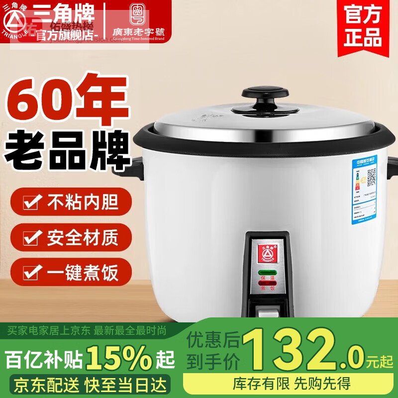 三角牌(Triangle)电饭锅家用 老式多功能便携宿舍用小容量不粘内胆电饭煲3-4人 6升加厚鼓型锅(适合6-9人) 6L¥