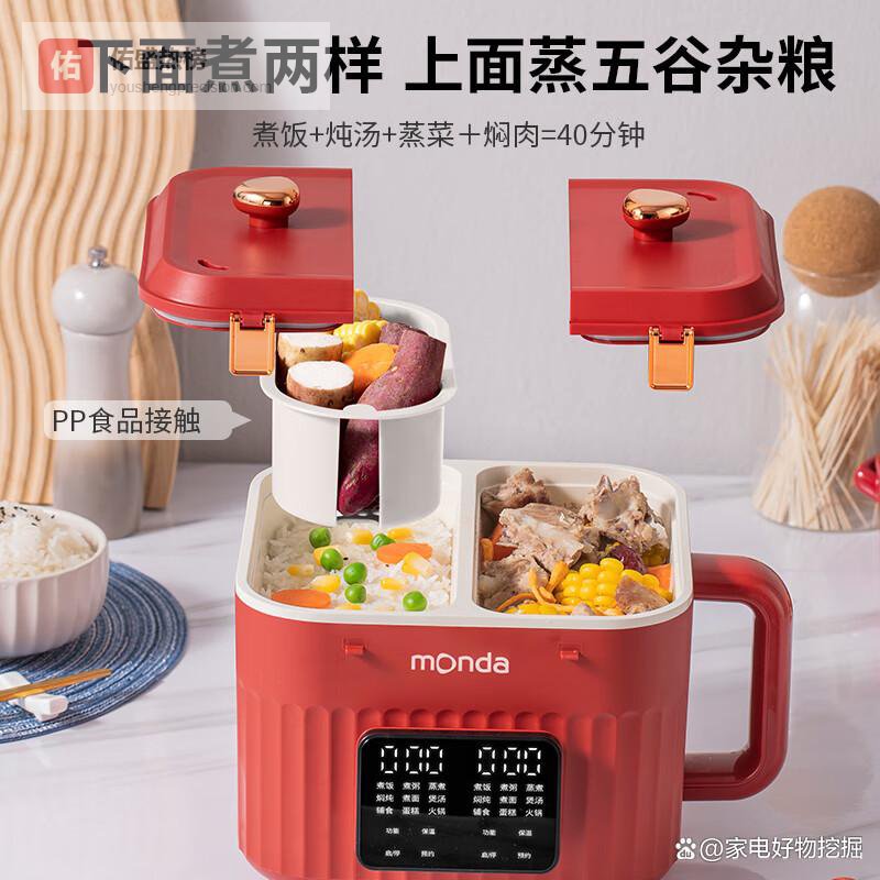 蒙达双胆电饭煲电饭锅小型1-2-3人多功能智能单人双用家用迷你蒸煮锅便携6022电饭锅 轻奢红 3L¥
