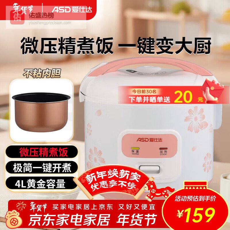 五、荣事达▶ 双重安全保护:这款电饭煲配备了双重过温保护,用起来真的挺放心的,不用担心电路短路或者过热的问题,煮饭更安全。让你在忙碌中也能安心享受美味,不用担心安全隐患。