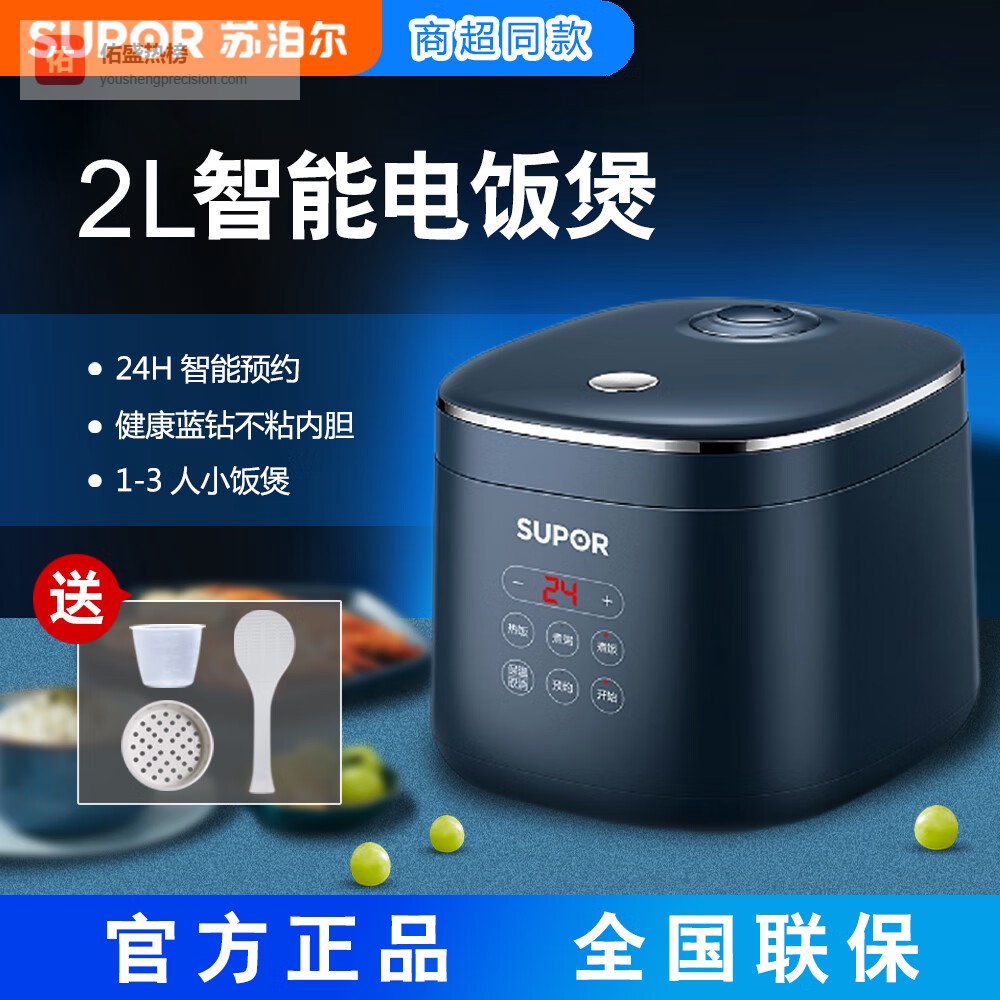 苏泊尔(SUPOR) 迷你型2L智能玲珑电饭煲SF20FC45小电饭锅智能预约小型便携1-3人宿舍用煮粥熬粥智能防溢多功能 【2升专柜款】带蒸格SF20FC45 2L¥