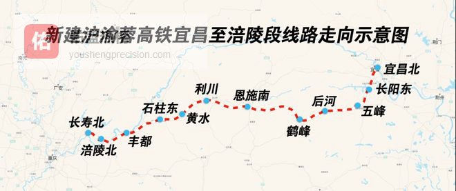 宜涪高铁是我国“八纵八横”高铁网沿江通道的重要组成部分,线路东起湖北省宜昌市,向西经恩施土家族苗族自治州,重庆市石柱县、丰都县、涪陵区,接入郑渝高铁长寿北站。新建正线全长约471公里,设计时速350公里。