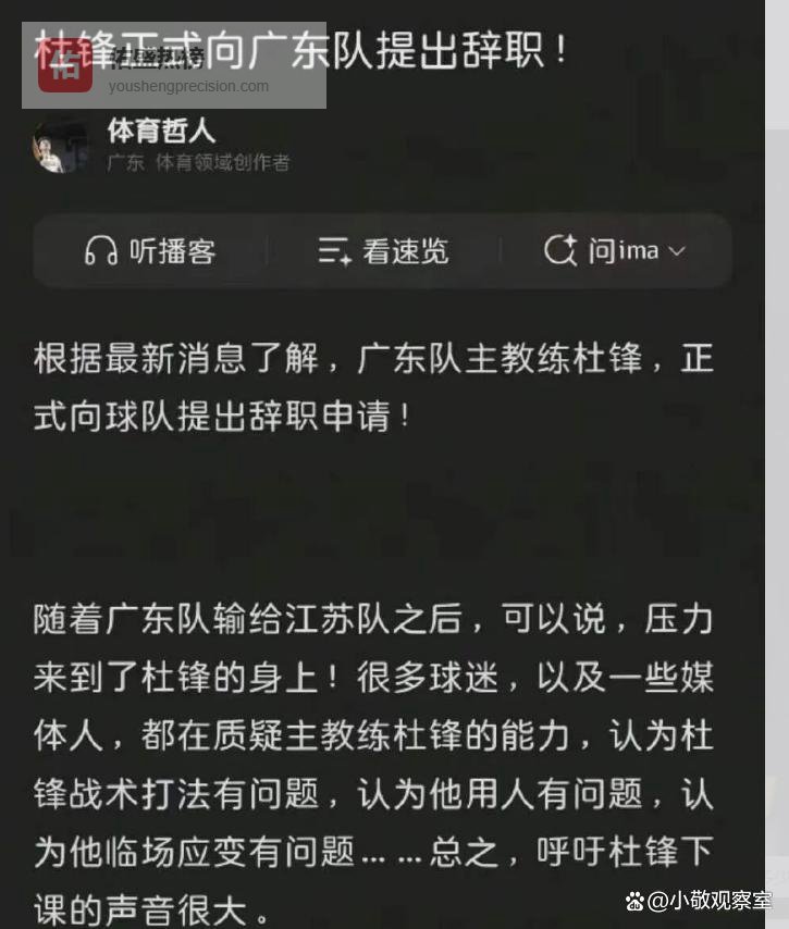 杜锋主动辞职?尘埃落定,谁注意杜锋行程,朱芳雨表态太真实
