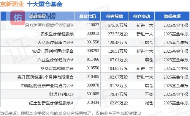 根据2025基金年报公募基金重仓股数据,重仓该股的公募基金共28家,其中持有数量最多的公募基金为易方达基金的易方达医疗保健行业混合A。易方达医疗保健行业混合A目前规模为30.94亿元,最新净值3.599(3月26日),较上一交易日下跌0.8%,近一年上涨13.23%。该公募基金现任基金经理为杨桢霄。杨桢霄在任的基金产品包括:易方达全球医药行业混合发起式(QDII)A(人民币),管理时间为2020年1月20日至今,期间收益率为19.48%;易方达医药生物股票A,管理时间为2020年11月4日至今,期间收益率为-23.51%;易方达港股通医药混合A,管理时间为2026年1月27日至今,期间收益率为-1.81%。