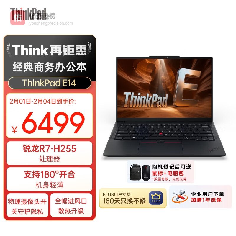 ThinkPad【国家补贴15%】E14 联想轻薄便携笔记本电脑 锐龙R7-H255 32G 1TB 黑 高效办公AI PC¥
