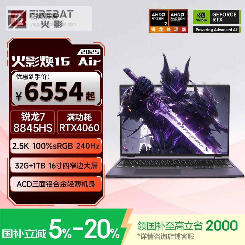六、火影特点: 16英寸高分屏、强劲AMD锐龙处理器、RTX4060显卡