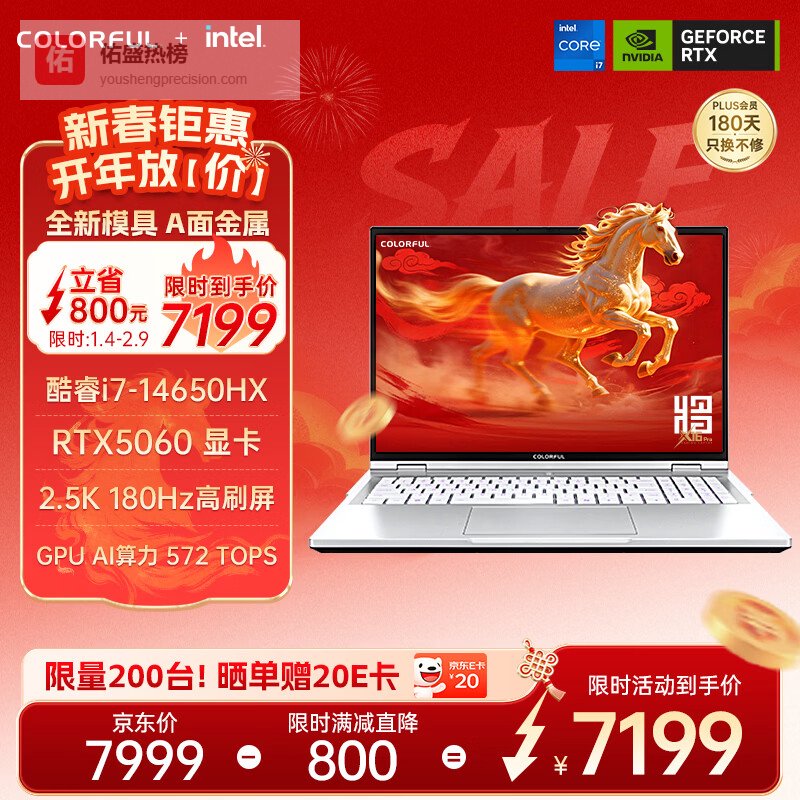七彩虹(Colorful)将星 X16 Pro 14代酷睿i7 16英寸游戏笔记本电脑( i7-14650HX 16G 1T RTX5060 180Hz)¥