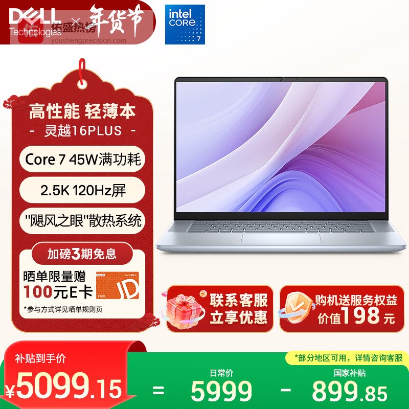 戴尔(DELL)笔记本电脑 国家补贴 灵越16PLUS-7640新款 120Hz 16英寸高性能轻薄本学生办公 酷睿7 16G 1T 2.5K¥