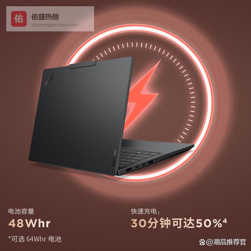这台笔记本支持多种接口,包括USB-C 3.2、USB-C 4.0、USB-A 3.2、HDMI 2.1,基本上日常连接外设、投屏都挺方便。内置Dolby Atmos音效系统,听歌看电影更带劲,还支持ThinkShutter硬件摄像头开关,保护隐私。全幅散热设计让散热效果更出色,保持性能稳定,还通过了MIL-STD-810H多项严苛测试,耐用性挺靠谱。内置48Whr大容量电池,续航表现还不错,随时随地都能继续工作和娱乐。