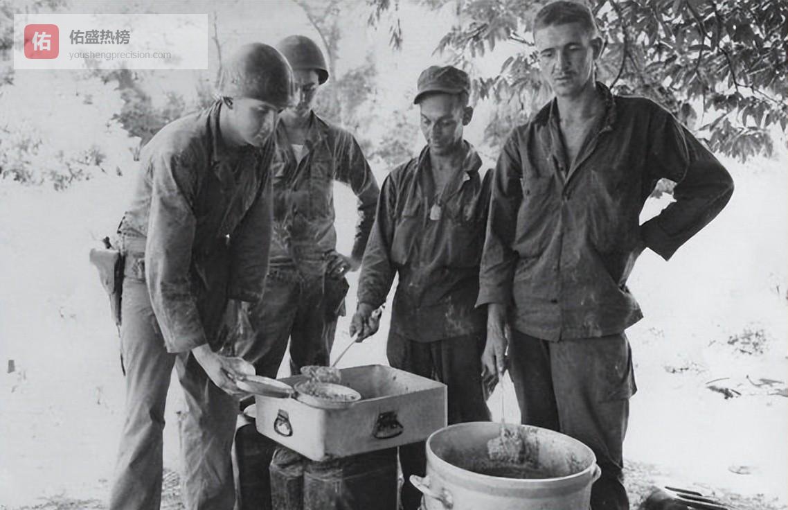 前线的午餐和晚餐必须有肉,每月80%的时间供应新鲜肉类,剩下20%才轮到美军士兵嫌弃的斯帕姆午餐肉。