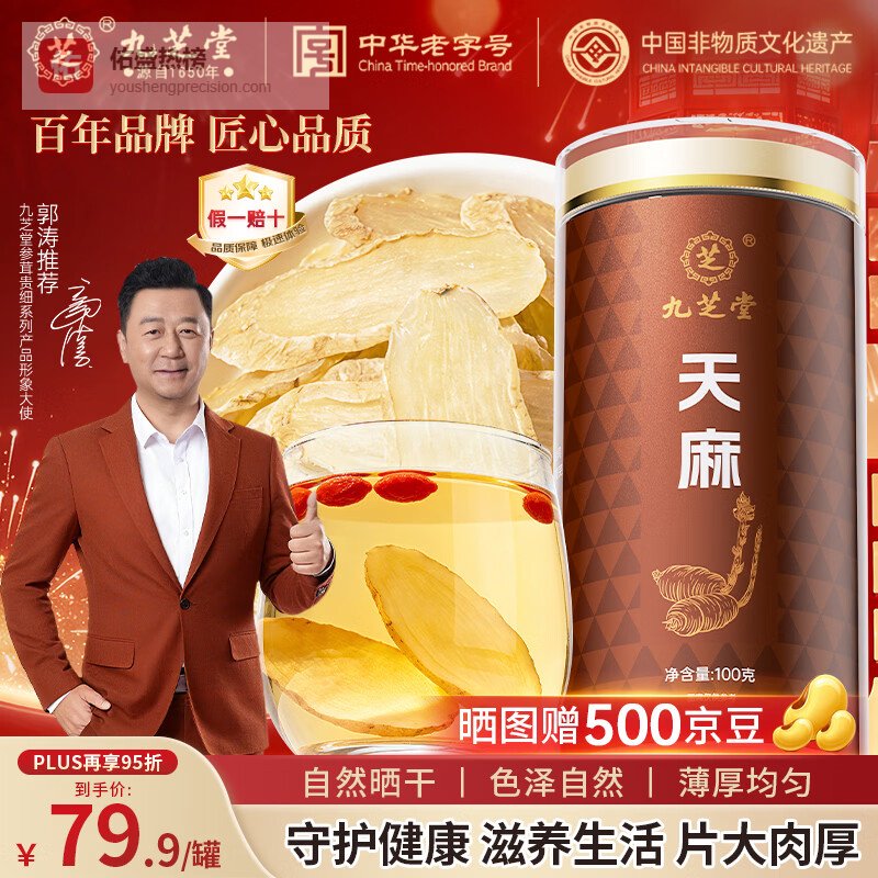 九芝堂天麻片100g 养生茶无熏硫干可切片磨粉泡茶泡酒煲汤滋补 年货礼物¥