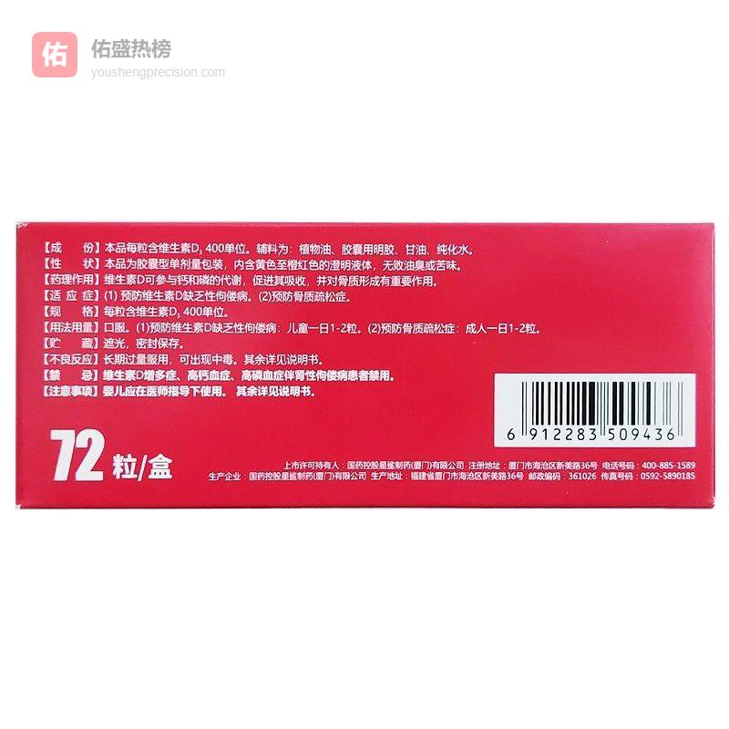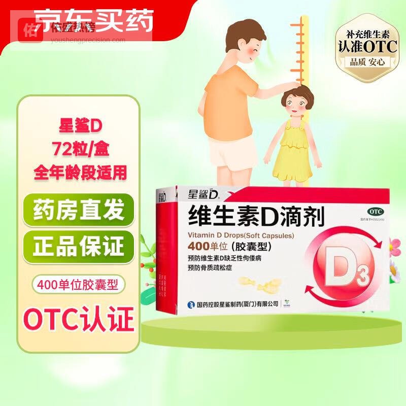 [星鲨]维生素D滴剂 400IU*72粒 2盒装 婴幼儿成人儿童vd补充维生素D3促钙吸收补钙¥