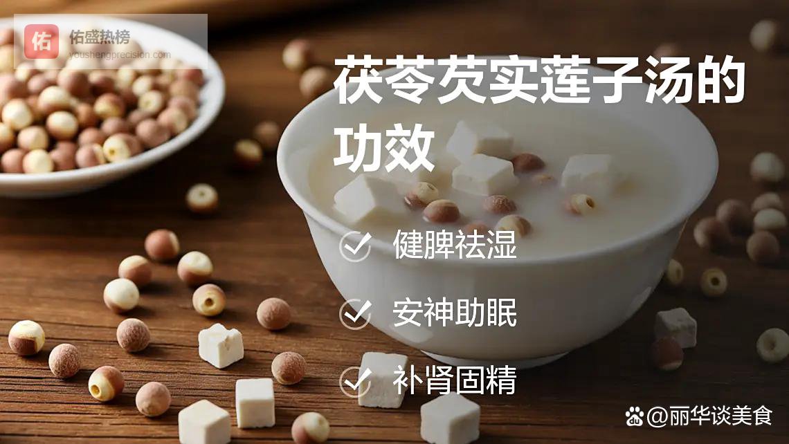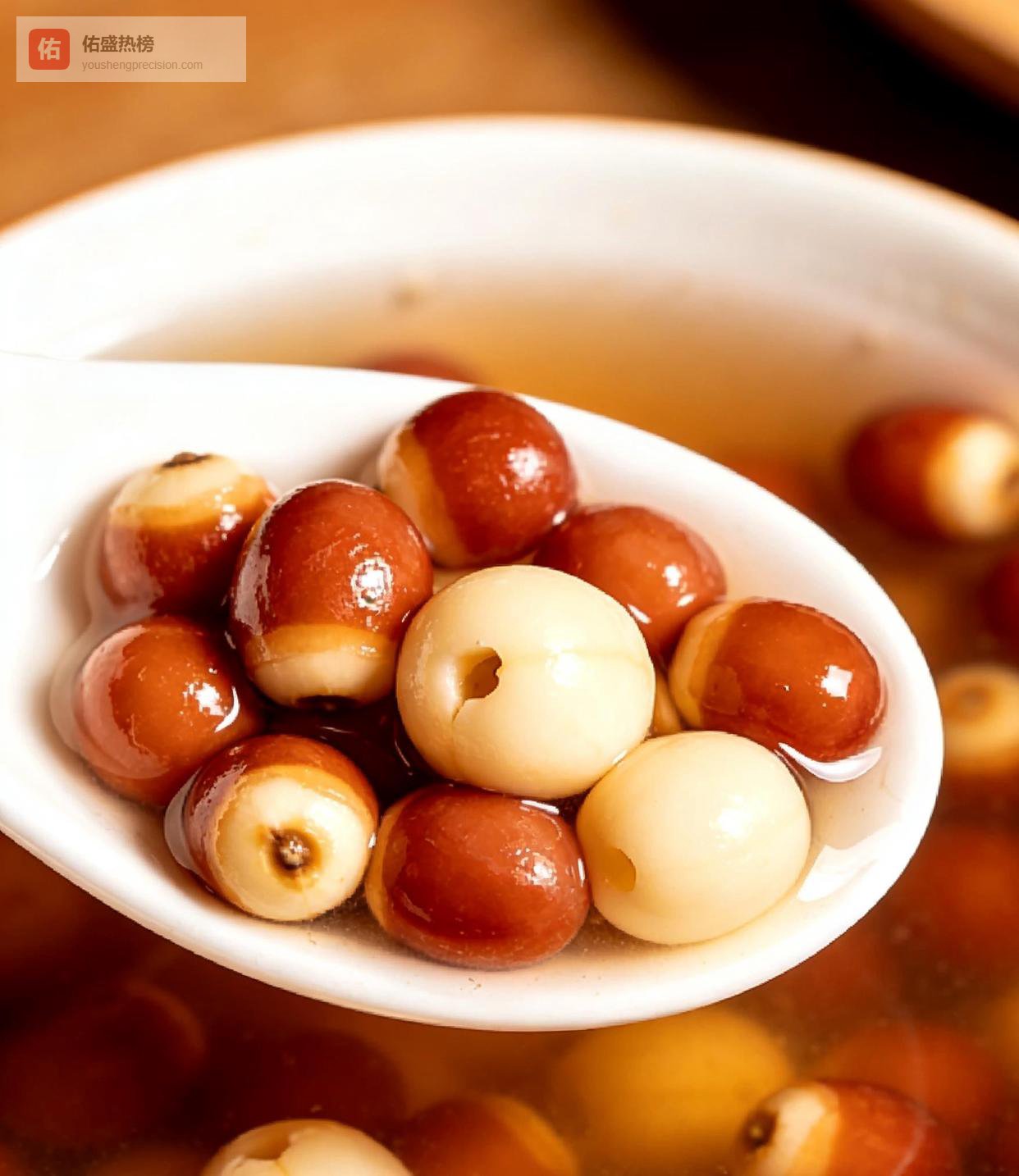 如果你觉得处理猪肚有点麻烦,或者想吃点甜的,那么第二道“芡实莲子汤”就非常合适。这是一道纯素的甜汤,口感软糯香甜,全家老少都能喝。它的主角是芡实和莲子。芡实,长得和莲子有点像,但功效侧重不同。它被誉为“水中人参”,性味甘平,主要作用是“益肾固精、补脾止泻、祛湿止带”。它就像一个收敛能力很强的管家,既能帮助固摄肾气,防止精华流失,又能强壮脾胃,把湿气收敛住并通过小便排出去。莲子我们上面介绍过,养心安神、健脾止泻。两者搭配,莲子可以中和芡实过于收敛的特性,而芡实能增强莲子的固摄作用,协同起来健脾祛湿、宁心安神的效果非常好。