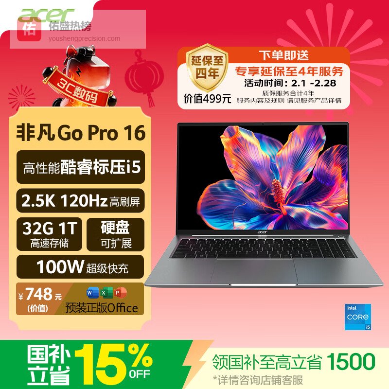 宏碁和神舟哪个型号值得推荐?第一款:宏碁轻薄本Go Pro 14英寸(i5-13500H 16G 1TB 2.8K)