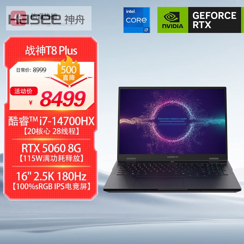 【京东自营】神舟【国家补贴RTX5060】战神T8Plus16英寸游戏本笔记本电脑¥