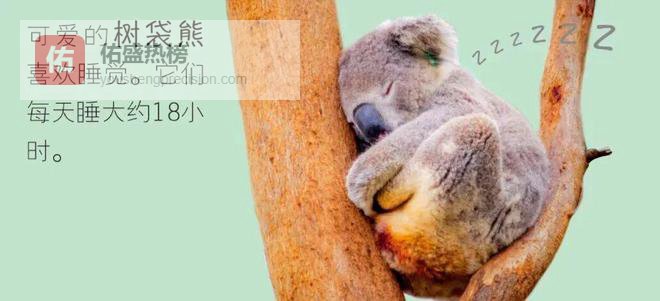 ▷可爱的树袋熊喜欢睡觉,它们每天大约睡18个小时。