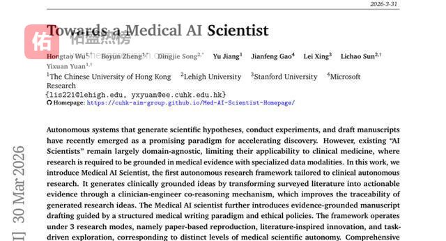 这项由香港中文大学、里海大学、斯坦福大学和微软研究院联合开展的研究,于2026年3月发表,论文编号为arXiv:2603.28589v1,为我们带来了一个令人惊叹的答案——医疗AI科学家(Medical AI Scientist)。这不是普通的AI工具,而是一个真正能够独立完成从想法产生到论文发表全过程的智能系统,就像拥有了一位永不疲倦、知识渊博的研究助手。